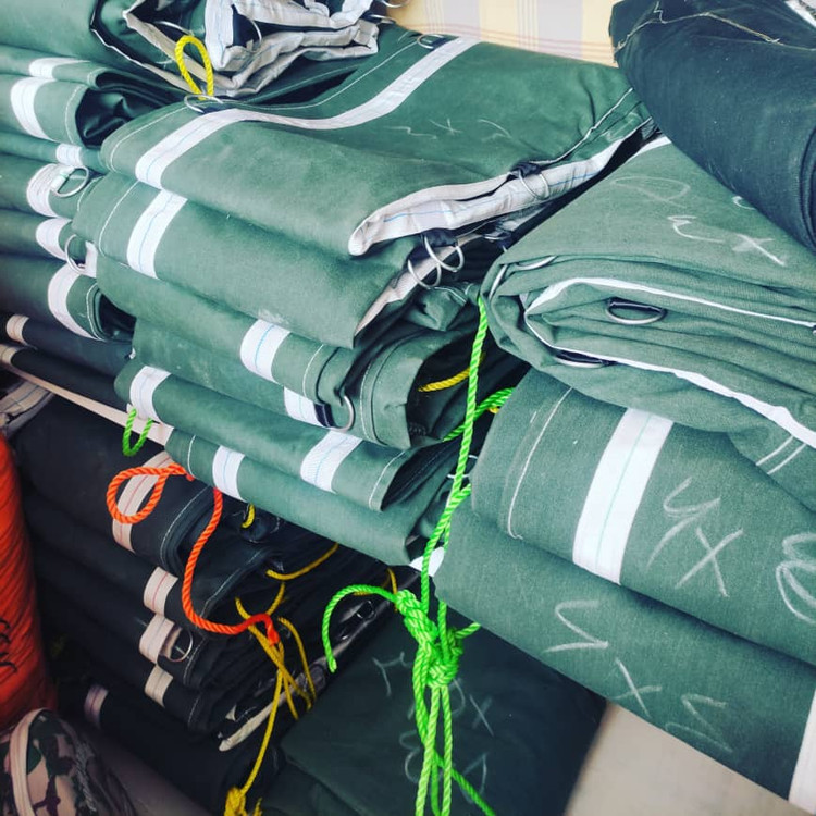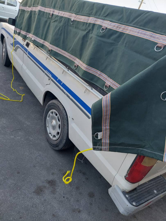 چادر نیسان برزنت ۱۲ متری درجه یک به همراه ۴ ردیف نواردوزی و حلقه و دم اسبی ( صلیب ) و طناب پشت و جلو چادر
